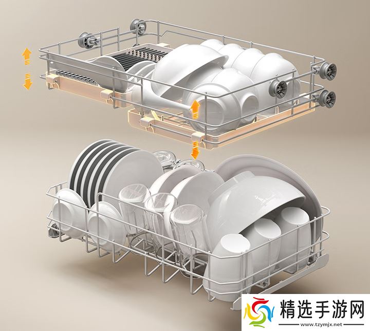 这款洗碗机内置105℃双风道环流热烘,可提升内部空气循环,加速烘干餐具与内腔,防止顶部水珠残留,保持干燥洁净。同时,其在上中下三层喷臂基础上新增奶瓶独立喷臂,可利用 38 条高温高压水柱、30000Pa 水压多角度喷淋。