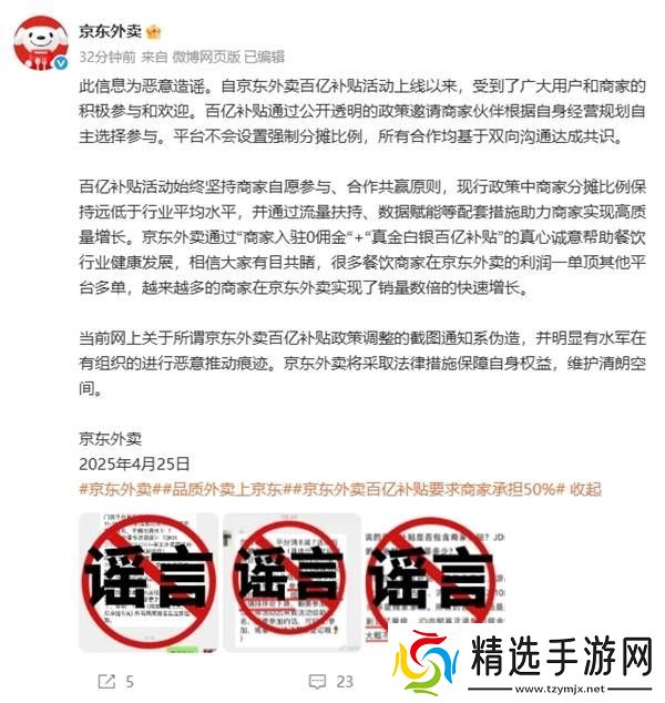 这一消息迅速引起了广泛关注。然而,京东外卖官方迅速作出回应,称该截图为恶意造谣,并明确表示平台并未设置强制的商家分摊比例。