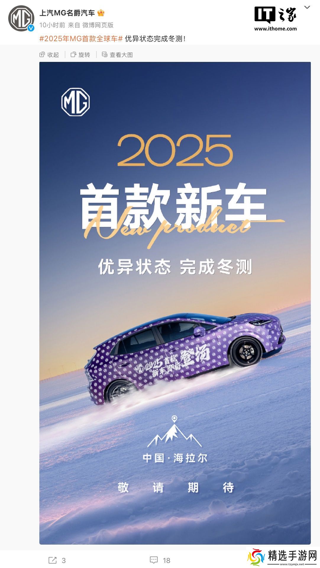 本站 3 月 14 日消息,上汽名爵MG宣布旗下“2025年首款新车”已完成冬季测试,即将登场。