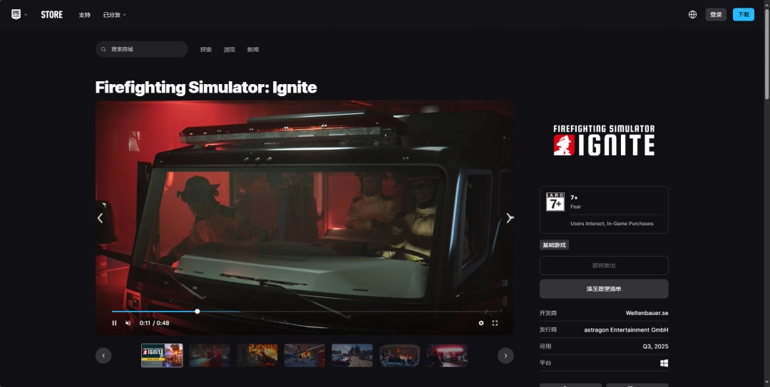 EPIC平台购买链接:https://store.epicgames.com/zh-CN/p/firefighting-simulator-ignite-a21121。