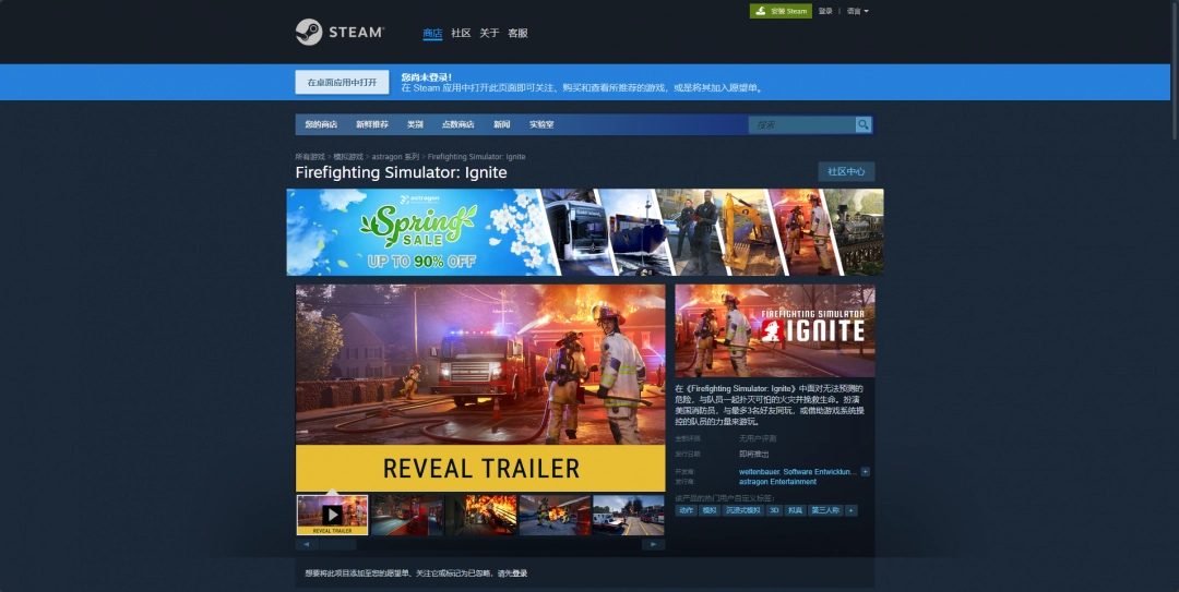 Steam平台购买链接:https://store.steampowered.com/app/1669480/Firefighting_Simulator_Ignite/。
