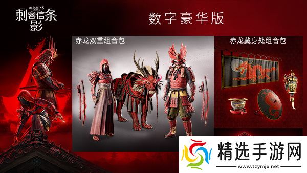 《刺客信条:影》是育碧开发的开放世界动作角色扮演游戏。而这款游戏的售卖版本分别是标准版、数字豪华版,数字豪华版除了本体游戏之外还有赤龙双重组合包、赤龙藏身处组合包和五个特长点数。