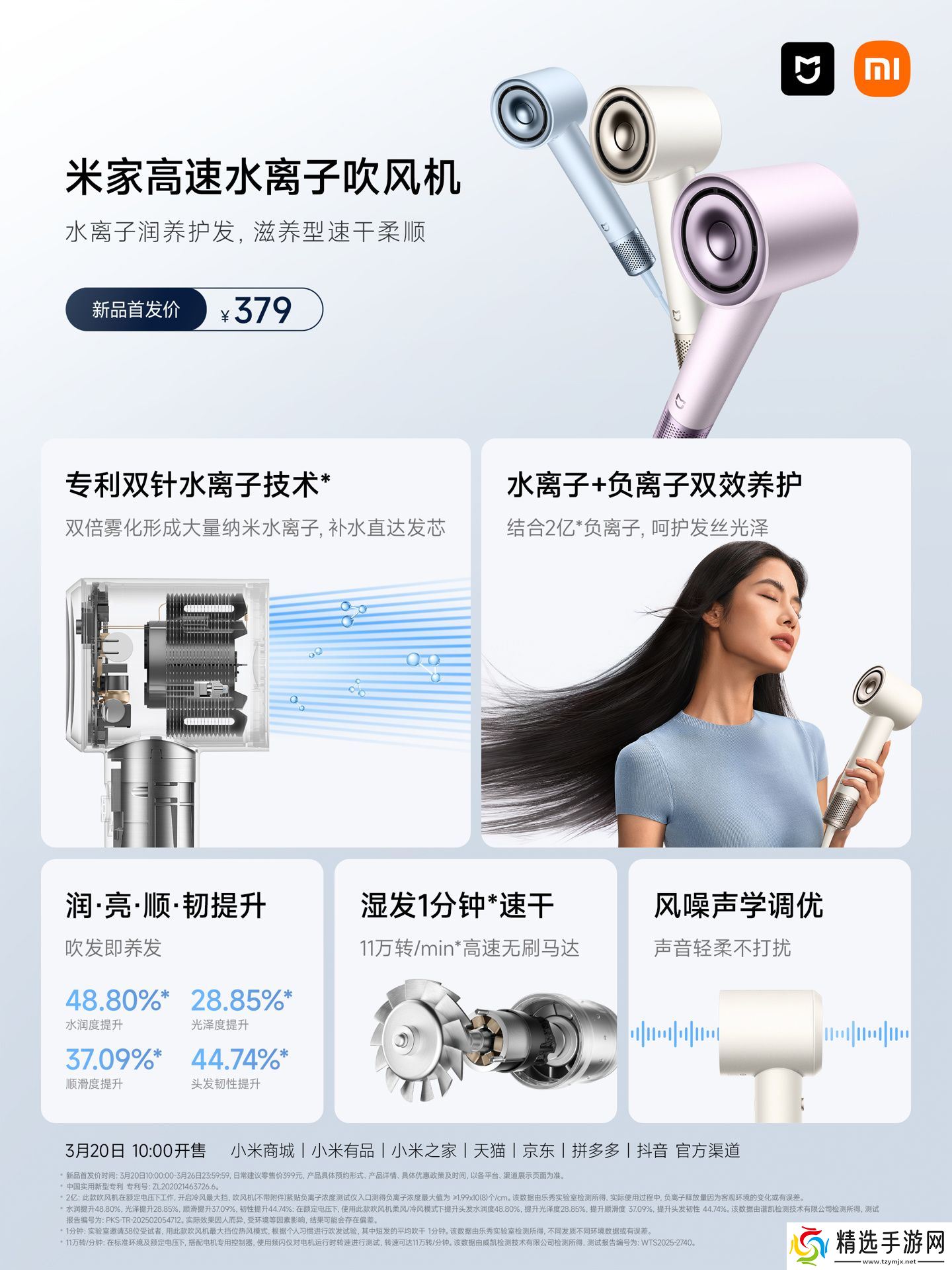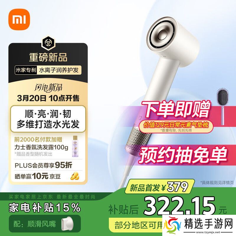 本站 3 月 20 日消息,小米官方宣布,米家高速水离子吹风机今日 1000 开售,额定功率 1600W,首发到手价 379 元,京东显示叠加国补后 322.15 元。