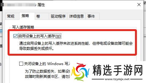 5、最后取消勾选【启用设备上的写入缓存】功能,点击确定按钮即可