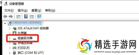 2、接着在设备管理器页面下,点击下方的【磁盘驱动器】选项