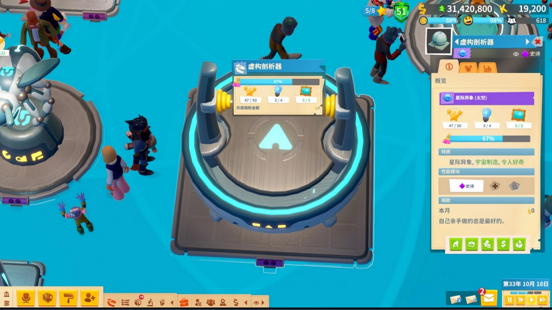 《双点博物馆》中的星际异象的数量是非常多的,而不同星际异象的解锁条件各不相同,首先是异象太空球,解锁需要的条件就是方形电池X2和三角电池X1,异象太空球在激活后的名称就是虚构剖析器。
