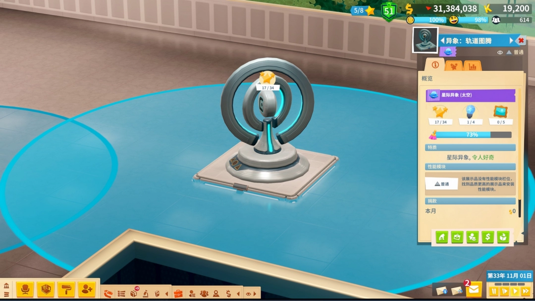 《双点博物馆》中的星际异象的数量是非常多的,而不同星际异象的解锁条件各不相同,首先是异象轨道图腾,解锁需要的条件就是虚构剖析器(太空球)X1,圆柱形电池X1,三角形电池X1。