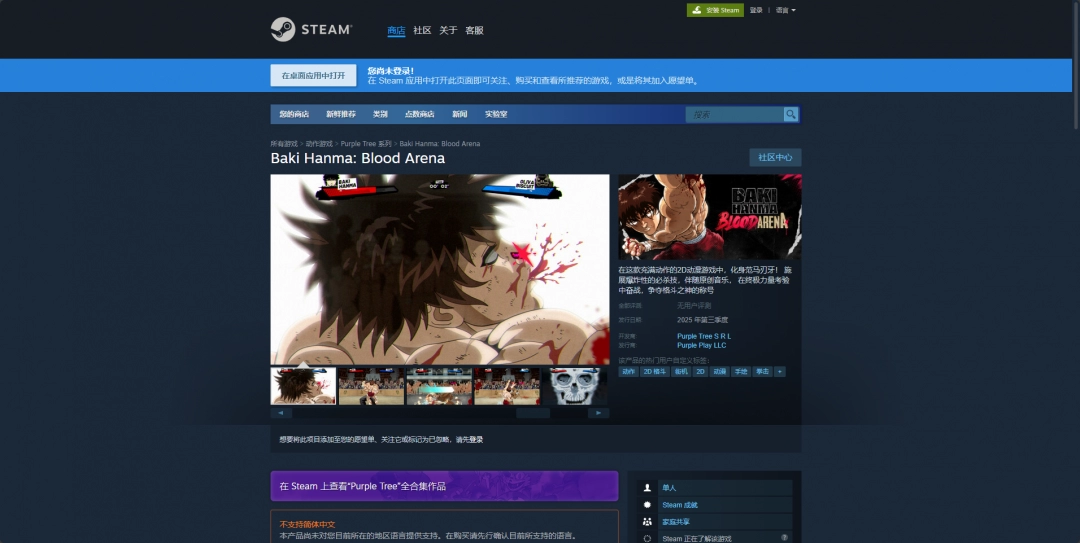 Steam平台购买链接:https://store.steampowered.com/app/3469230/Baki_Hanma_Blood_Arena/。