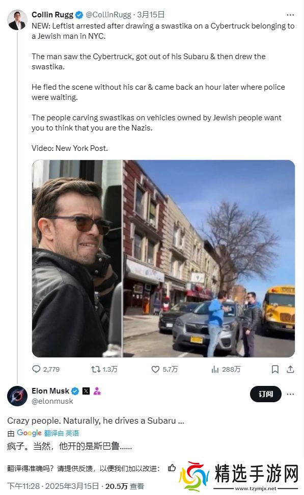 本站注意到,马斯克在看到视频后,对肇事者所驾驶的车辆品牌 —— 斯巴鲁(Subaru)进行了调侃,他说道:“真是疯子。果不其然,他开的是斯巴鲁……”这一调侃或许源于一种刻板印象,即斯巴鲁车主通常具有强烈的**和社会观点。在 Reddit 上,甚至有人调侃称斯巴鲁若不贴满至少十张贴纸便无法启动。