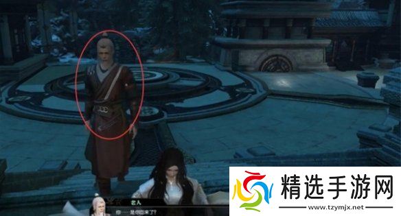 3、与老人对话后,进入剧情场景,找到场景内的蓝色光圈并进入。