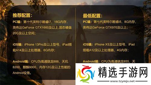 《黑光生存进化》有着经典的生存沙盒玩法框架,同时采用虚幻5引擎制作,带来了令人震撼的视觉体验。此次不付费删档测试为iOS、安卓双平台测试,为保证获得最佳游戏体验,建议玩家使用以下机型进行游戏,如设备性能不足,也可以下载《黑光生存进化》PC端进行游玩,尽情享受这场魔幻沙盒冒险之旅。
