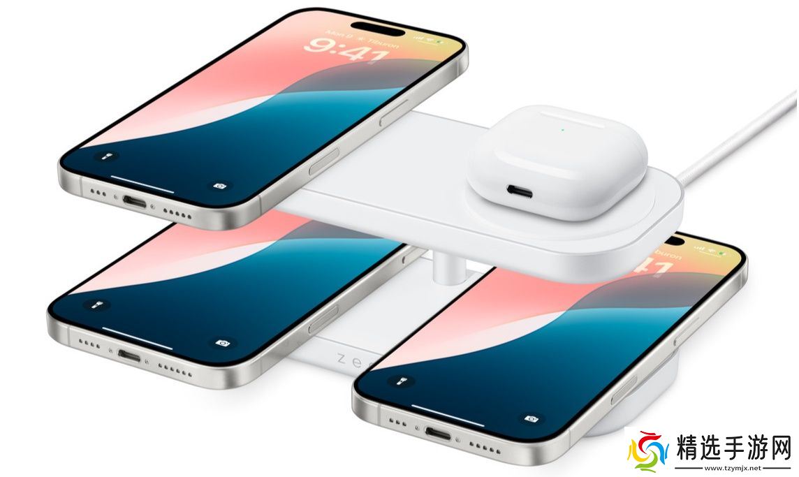 这款充电器采用双层磁吸架构,每层集成两个 MagSafe 充电模块,可同时为四台 iPhone 手机或 AirPods 耳机同步充电。