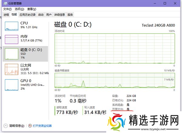 需要注意的是,游戏安装在“固态硬盘”中会更流畅,我们可通过右击【任务栏】——【任务管理器】——【性能】——【磁盘】——【类型】来查看是否为固态硬盘,类型显示HDD代表是机械硬盘,显示SSD代表固态硬盘;