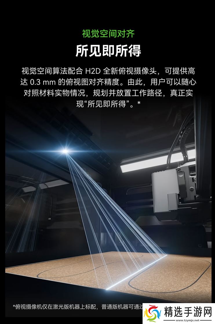 官方强调这款 3D 打印机(10W / 40W 激光版本)配备视觉空间对齐技术,可提供0.3mm俯视图对齐精度,允许用户随心对照材料实物情况规划放置工作路径。