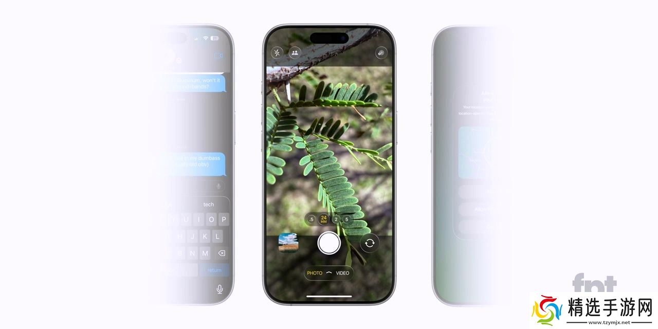 已披露的 Messages 和 Camera 应用设计可信度较高:采用气泡悬浮按钮、圆角菜单及半透明效果,与现有 Sports / Invites 应用风格一致。
