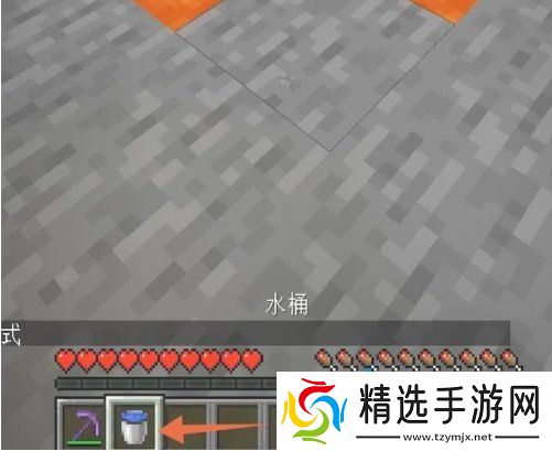 1、首先我们需要携带水桶和水源前往岩浆地区;