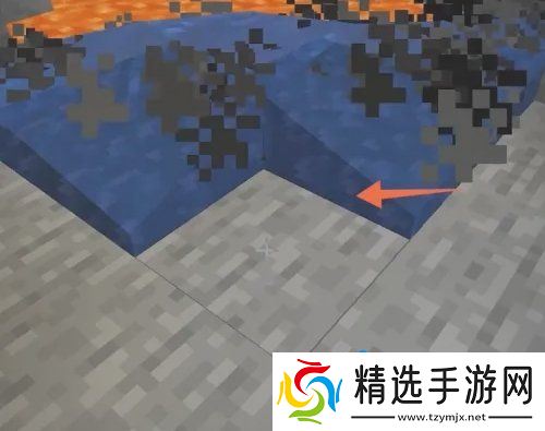2、接着在岩浆旁边倒水,就会自动生成一片黑耀石;
