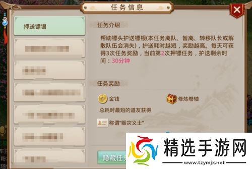 1、镖行万里建议玩家们组队前往,任务的完成时间将决定我们获取的奖励数量;