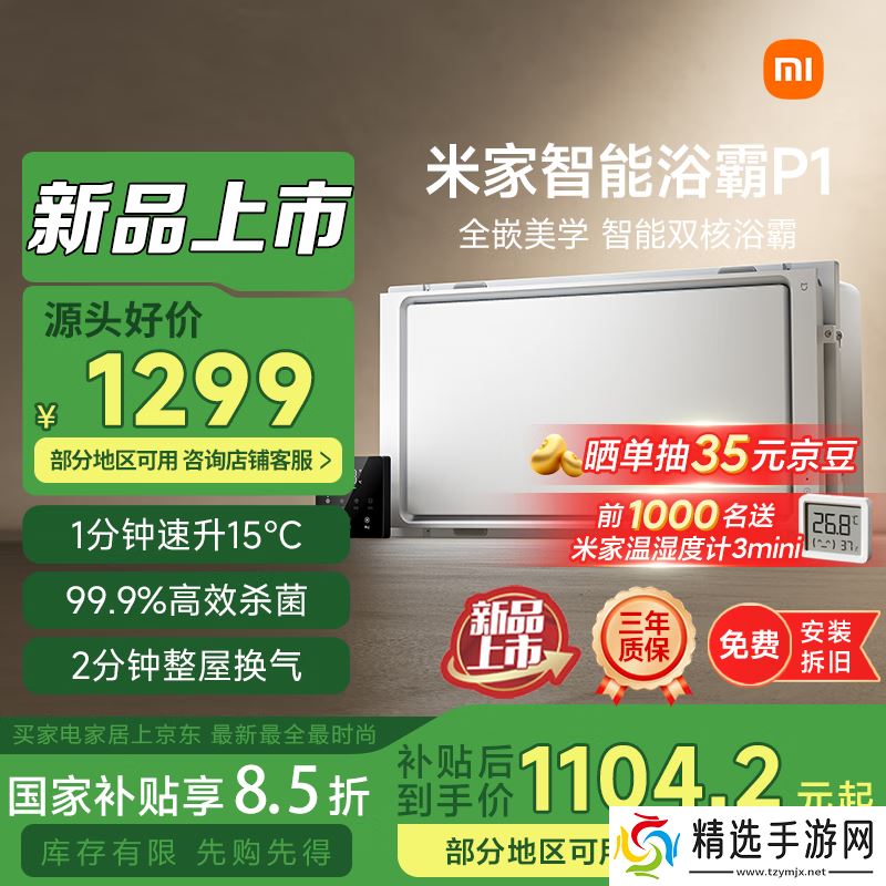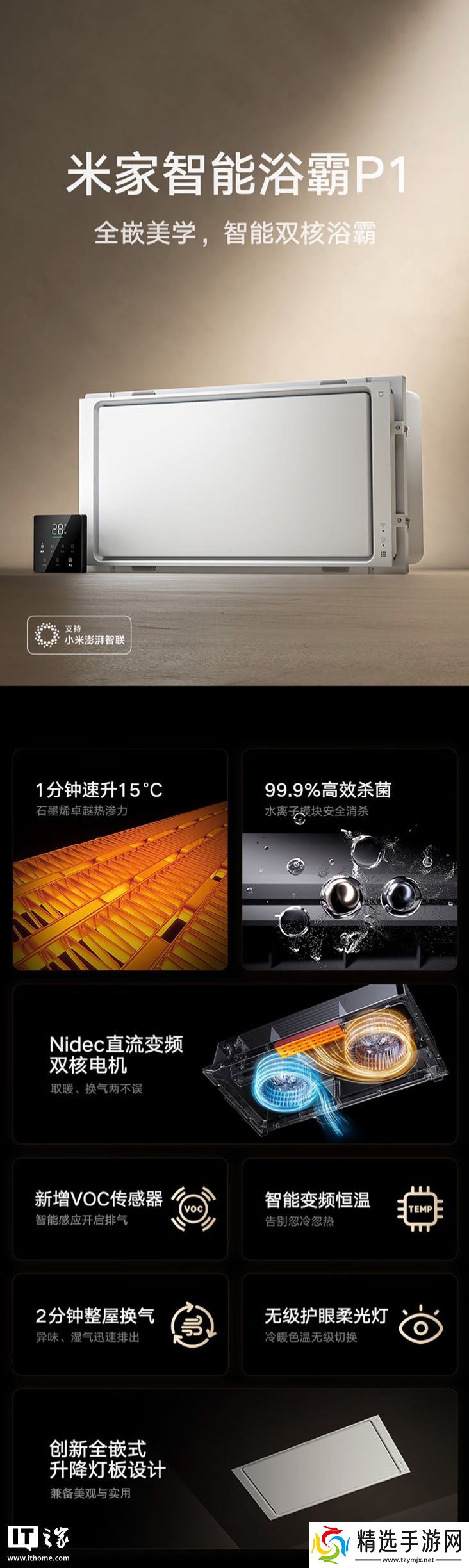 本站 3 月 18 日消息,小米现已在京东上架一款小米米家智能浴霸 P1,主打“1 分钟升温 15℃、99.9% 杀菌、2 分钟整屋换气”,将于3月21日首销,定价为1299元。