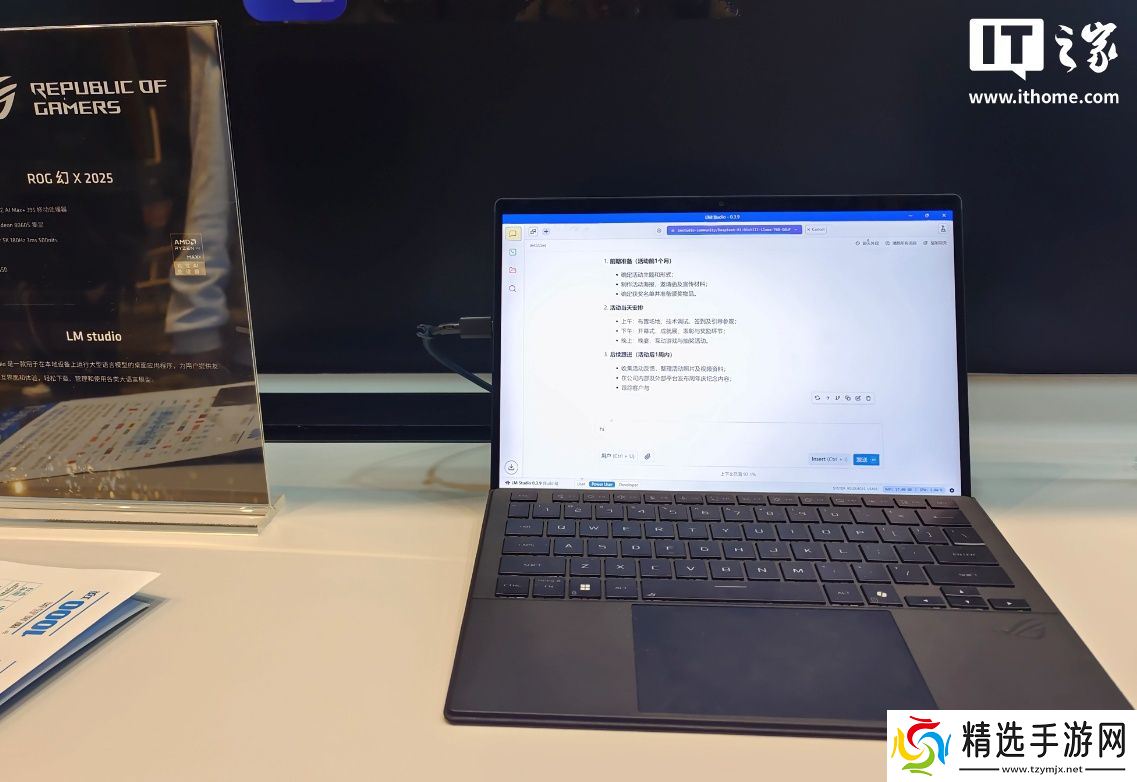 比如在 AMD 锐龙 AI Max + 工作站展区,AMD 展示了基于全新 AMD 锐龙 AI Max 处理器带来的 AI 应用体验。其中搭载 AMD 锐龙 AI Max+ 395 移动处理器的 ROG 幻 X 2025 可以流畅在本地加载运行 AMD StrixHalo LLM 应用。在这个应用中,这台笔记本能够流畅运行 Llama70B 大模型,虽然其对硬件资源的需求较高,但通过 AMD 对其优化后的推理效率使得单位 token 激活参数成本降低。