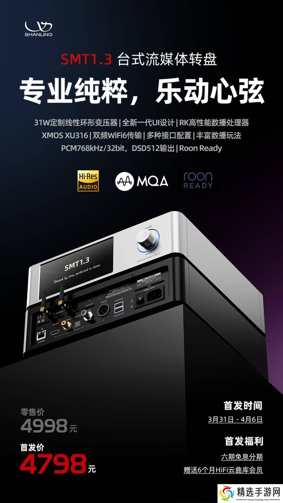 山灵公司近日宣布,其最新的台式流媒体转盘SMT1.3将于3月31日正式面市,而首发优惠活动将持续至4月6日,期间售价为4798元。这款播放器提供了黑白两种颜色选择,外观简约而不失高端感,采用了铝合金边框设计。