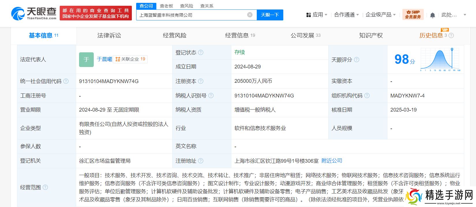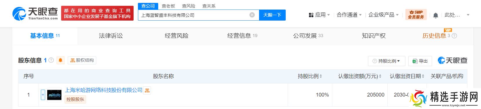 在股权结构上,蓝智盛丰拥有清晰的背景。据天眼查进一步揭示,该公司由上海米哈游网络科技股份有限公司全资控股。米哈游作为业内知名的游戏开发商和运营商,其强大的实力和资源无疑为蓝智盛丰的未来发展提供了坚实的支撑。