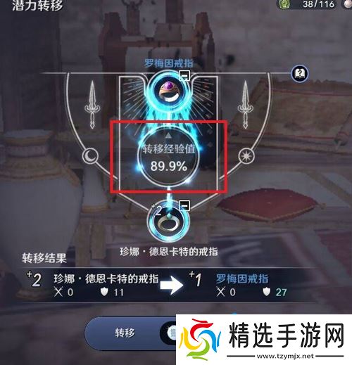 2、点击转移后,即可看到当前装备转移继承后的属性和等级;