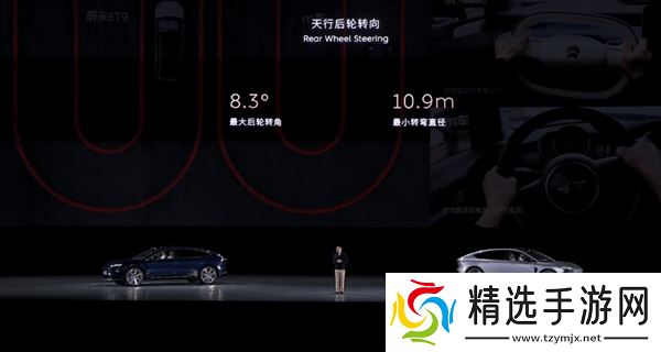 底盘系统是ET9的另一大亮点。它搭载了“SkyRide”天行底盘系统,拥有线控转向、后轮转向和全主动悬架等先进技术。其中,后轮转向最大角度可达8.3°,最小转弯直径仅为10.9米,比宝马MINI还要出色。ET9还配备了23英寸大轮毂和空气悬架,拥有200mm离地间隙和220mm悬架行程,可在一秒内下调50mm,为驾驶者提供了卓越的操控性能。