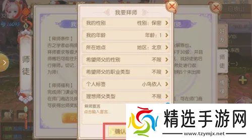 2、师徒双方的好友亲密度需要在2000以上,每位师父最多可以收取3位徒弟;