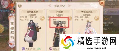 6、发送申请后,显示发送成功,只需要等待师父同意即可拜师成为师徒。