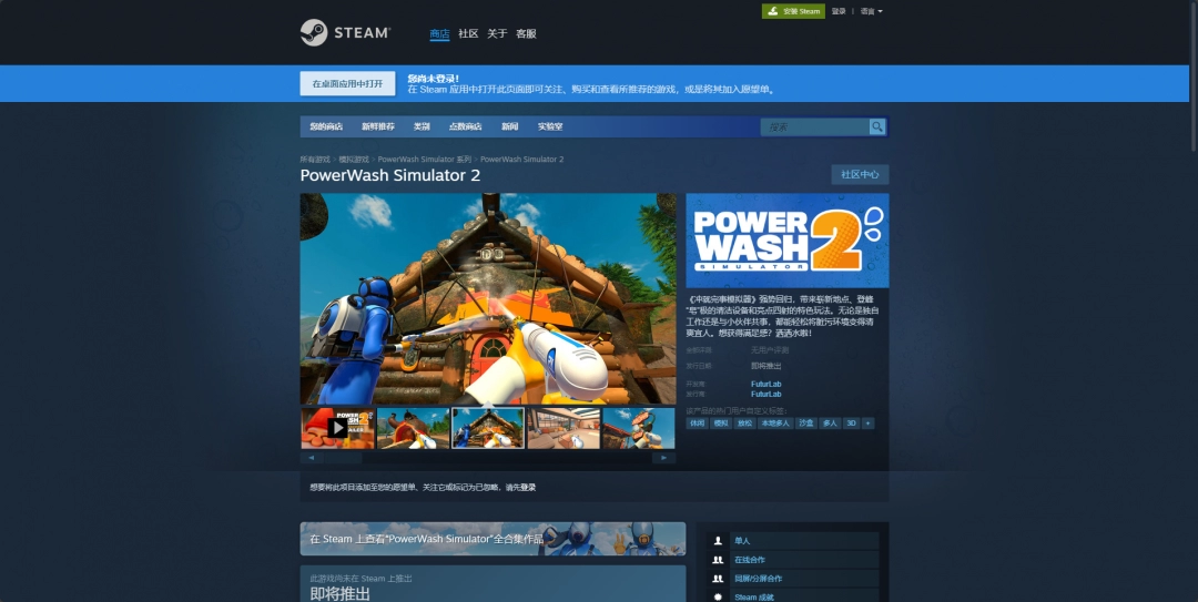 Steam平台购买链接:https://store.steampowered.com/app/2968420/PowerWash_Simulator_2/。