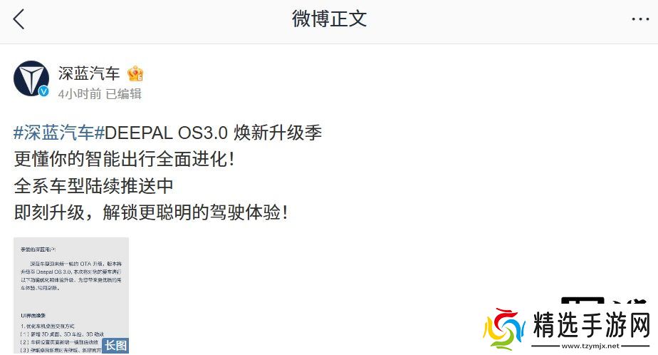 本站 3 月 20 日消息,深蓝汽车今日发布 DEEPAL OS 3.0 系统 OTA 升级公告,新版本深度融合 DeepSeek,支持多轮对话与上下文理解、实时信息获取与更新等能力,官方称“全系车型陆续推送中”。