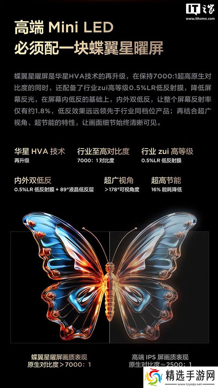 系列电视面板为4K超频288Hz(原生144Hz)基础规格,均拥有 7000:1静态对比度,其他方面细节有所差异: