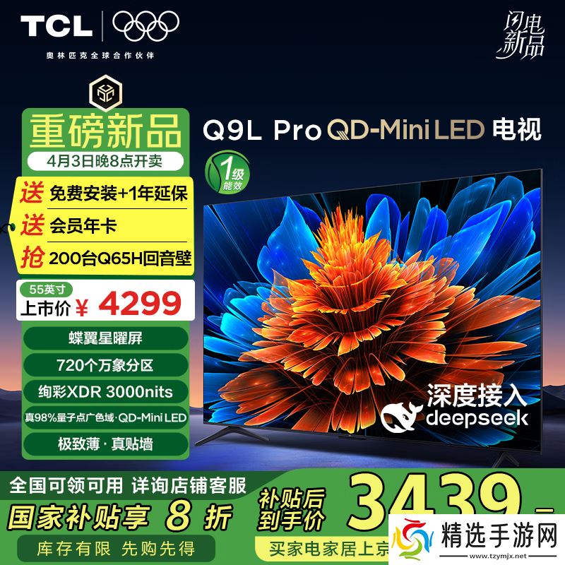 京东 TCL Q9L Pro 系列电视 4299 元直达链接