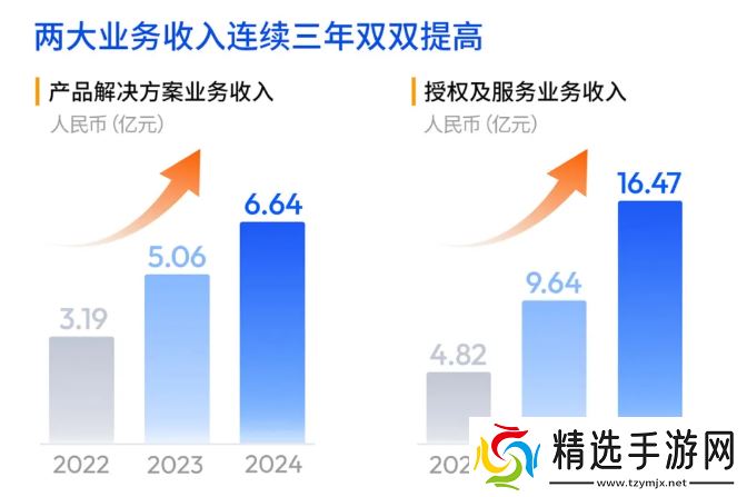 其中,产品解决方案营收 6.64 亿元,同比增长 31.2%,收入占比 27.9%;授权与服务业务营收 16.47 亿元,同比增长 70.9%,收入占比 69.1%。