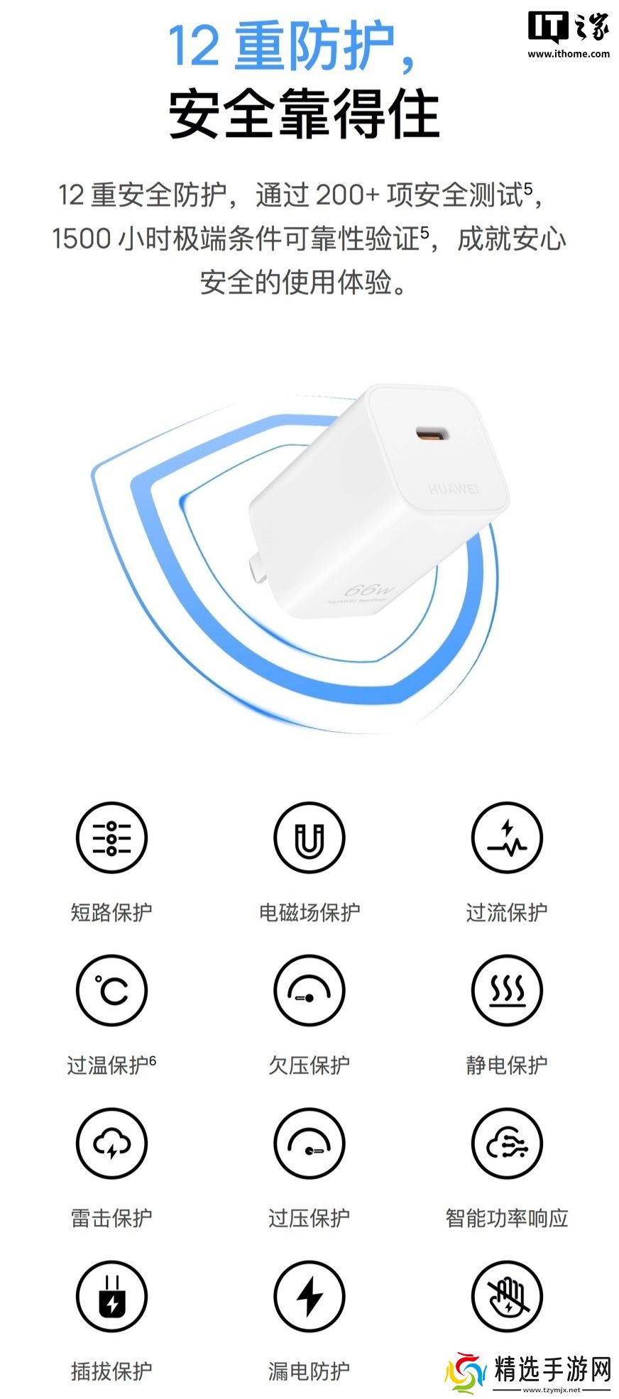 本站注意到,该充电器除了支持华为 SuperCharge 快充协议之外,还兼容 UFCS、PD、PPS 及 QC 协议,支持搭载 HarmonyOS / iOS / Android 等不同系统的设备进行快充。该充电器原装标配的 USB C-C 数据线采用双层镀锡铜屏蔽层设计,支持 6A 电流。内置 E-Marker 芯片,可使数据线智能匹配终端设备所需要的电压和电流。