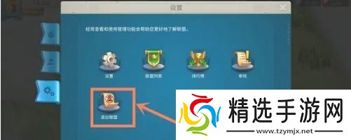 4、在联盟设置菜单栏中,可以看到退出联盟按钮;