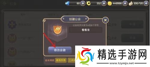 2、接着在创建公会页面,点击左侧的修改会徽;