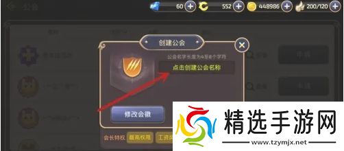 1、首先我们点击创建公会,然后点击创建公会名称,输入公会的昵称;