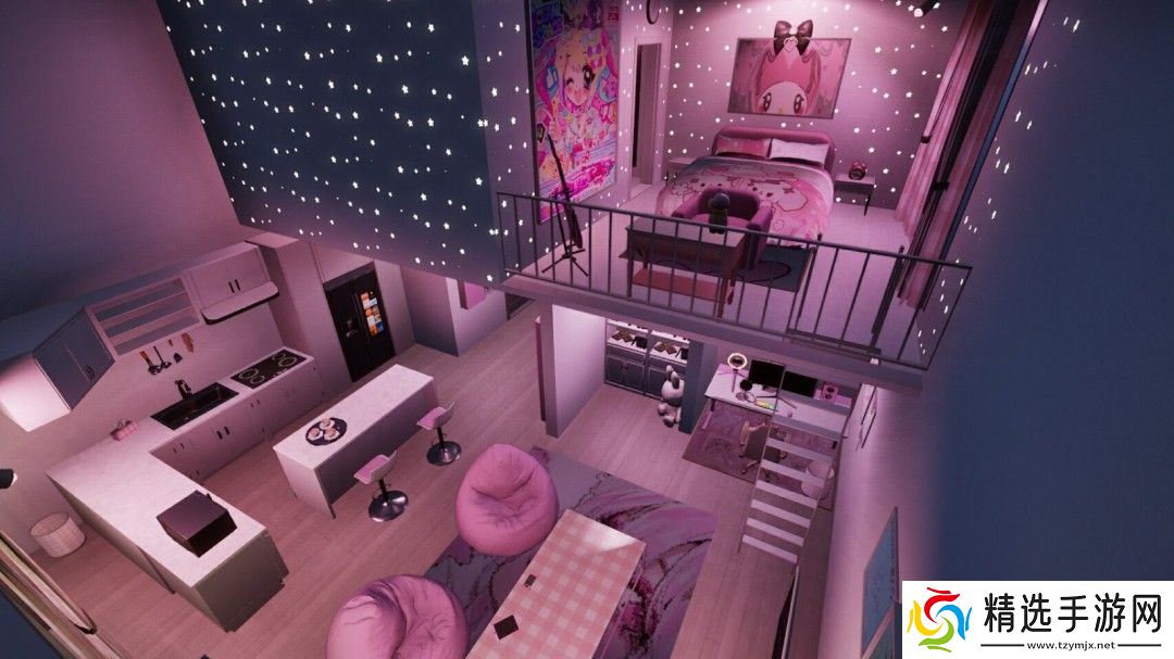 《inZOI》中的建筑系统是游戏里比较特殊的系统,玩家可以根据自己的要求造成自己想要的地产,粉色可爱房间的地产就是很多玩家比较喜欢的,这套房子外表看起来就是一个粉粉嫩**孩子的房间,在氛围灯的渲染下非常有感觉。