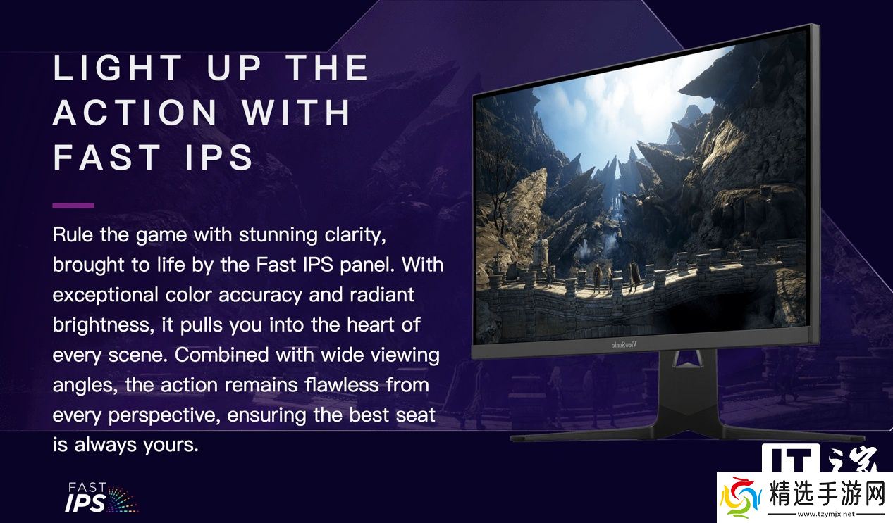 该显示器采用电竞风格外观设计,背部有一根“V”字形状 RGB 灯带,显示器自带升降支架,可进行 130mm 的高度调节、90 度垂直旋转及-3~20 度的俯仰调节。该显示器采用一块 27 寸的 Fast IPS 面板,比例为 16:9,具备 4K 160Hz 及 1080 320Hz 两种显示模式,兼顾单机及网络游戏的体验;屏幕响应时间为 0.5ms,屏幕最高亮度 300 尼特;支持 94% 的 PCI-P3 色域和 99% 的 sRGB 色域;通过 8bit+FRC 技术达到 10 bit 色深。