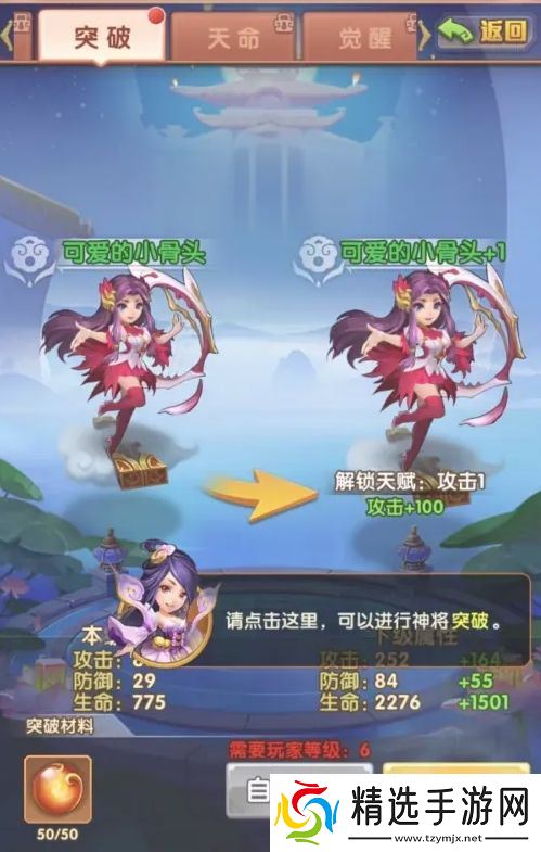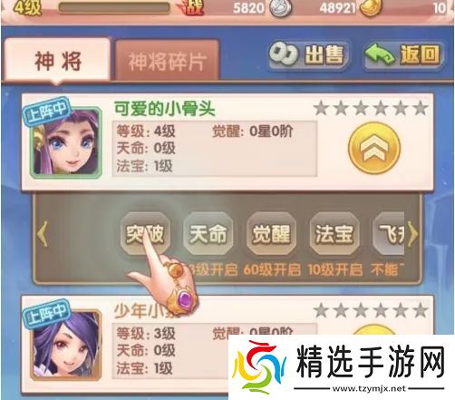 神将的突破需要消耗一定数量的天命丹,需要在主线任务、副本掉落、商店购买获取天命丹。