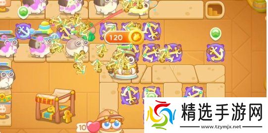 1、首先在右侧放置2个船锚并升到满级,清理附近的道具;