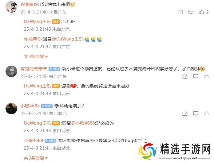 本站 4 月 3 日消息,小米公司应用软件部总监王乐今日发文称,由于小米 15 系列 Beta 版本存在部分场景下手环耗电增加的问题,为了不影响大家假期户外使用,OS 项目团队决定在节前(此处预计指清明节)发版提供更新修复。