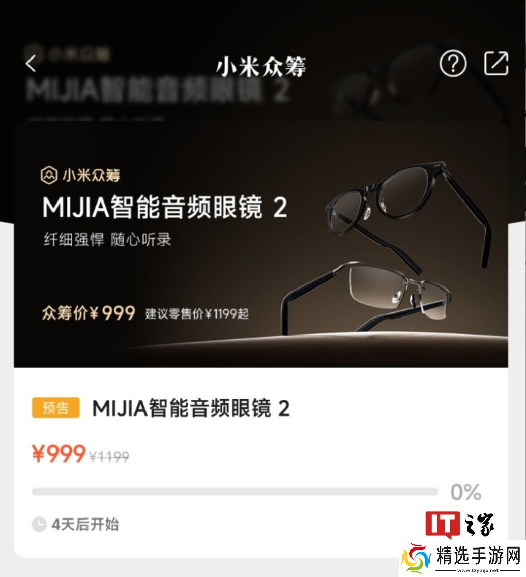 本站 3 月 22 日消息,小米昨晚悄悄在小米众筹平台悄悄上架了 MIJIA 智能音频眼镜 2,主打 5mm 镜腿、27.6g 机身、12 小时连续聆听续航,标准价 1199元,众筹价 999元,但目前官方又下架了这款产品。