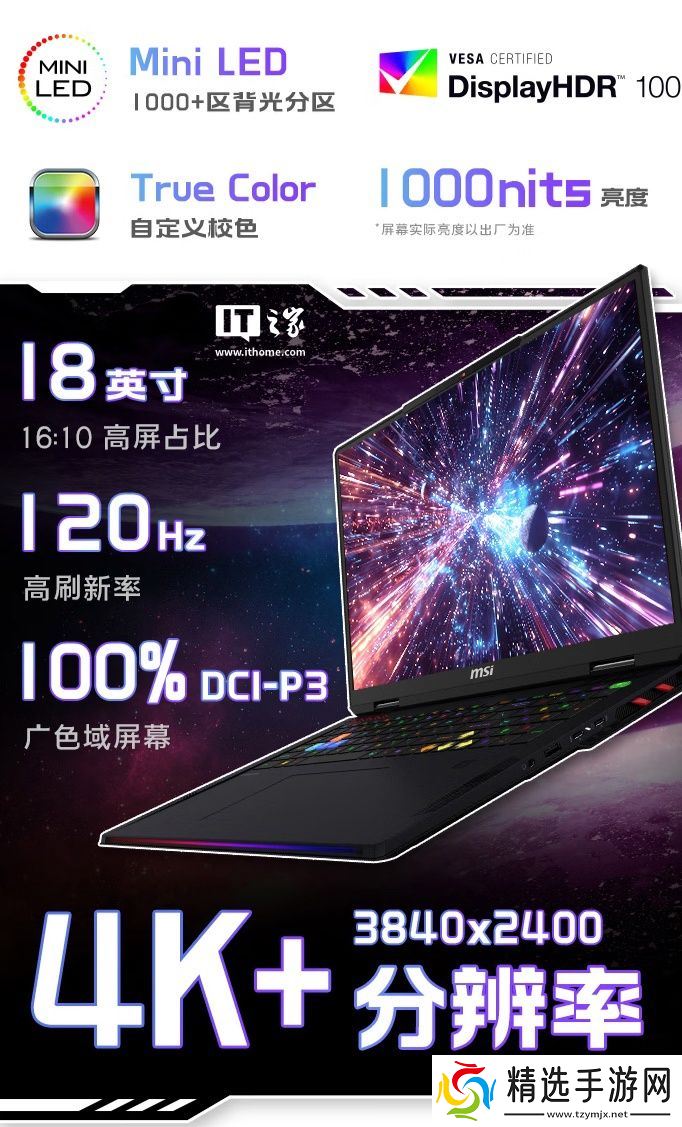 该机配备一块 18 英寸3840x2400分辨率120Hz Mini LED面板,亮度1000尼特,覆盖100% DCI-P3色域,配有1080P摄像头,同时支持红外人脸识别。