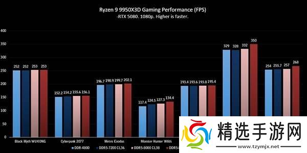 在实际应用中,微星使用了一套默认频率为4800MT/s的16GB×2内存进行测试。通过BIOS功能,他们成功将内存超频至DDR5-8000,并同时启用了“High-Efficiency Mode”与“X3D Gaming Mode”。测试结果显示,在新游戏《怪物猎人:荒野》中,性能相比默认的DDR5-4800提升了14.5%,相比XMP DDR5-7200也提升了约8%。而在《孤岛惊魂6》与《古墓丽影:暗影》中,性能分别提升了约6%。
