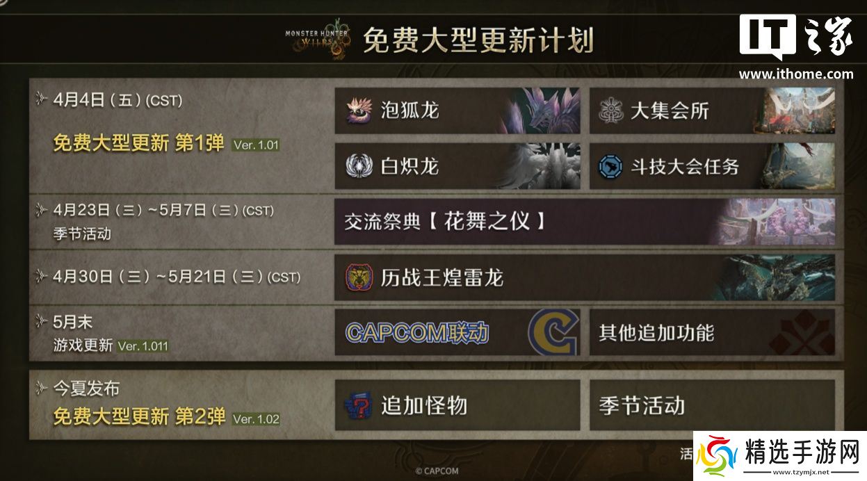 本站 4 月 3 日消息,《怪物猎人:荒野》第一弹免费大型更新(1.010.00.00)将于明日 11:00 正式上线,卡普空刚刚在官网发布了此次更新说明。本站翻译如下: