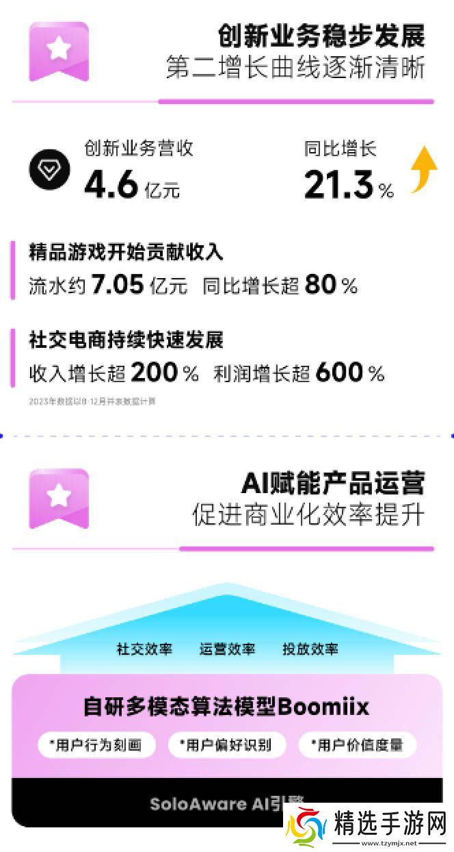 在技术创新方面,赤子城科技首次披露了其自研的多模态算法模型Boomiix。该模型在提升商业化效率方面发挥了关键作用,使得公司在用户行为分析、偏好识别和价值度量等方面取得了显著进步。以SUGO为例,在Boomiix的加持下,其社交匹配效率大幅提升,运营决策更加智能化,年末ARPU值较年初提升了超过20%。