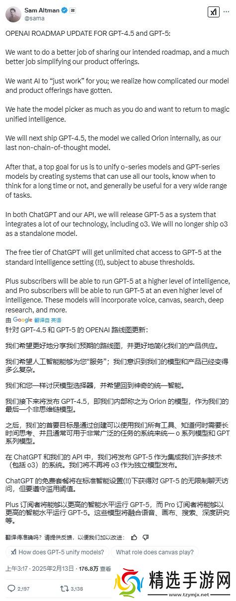 本站注意到,奥尔特曼今年 2 月曾发布一份路线图,详细阐述了公司 GPT-4.5 和 GPT-5 人工智能模型的发展计划。